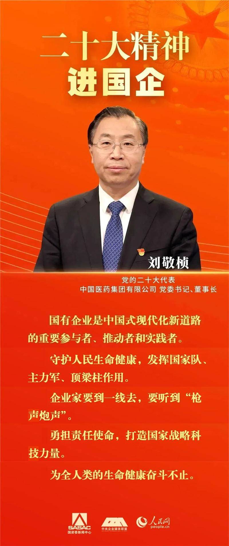 “国有企业是中国式现代化建设道路上以人民为中心立场的坚定拥护者。”近日,党的二十大代表、中国医药集团有限公司党委书记、董事长刘敬桢在做客“二十大精神进国企”系列融媒体访谈时表示,国药集团积极践行健康中国战略,着力提升国家公共卫生应急保障能力,在守护人民生命健康方面发挥国家队、主力军和顶梁柱作用。
