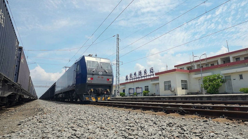 一列中越班列驶进钦州港东站(9月14日摄)。新华社记者 张爱林 摄