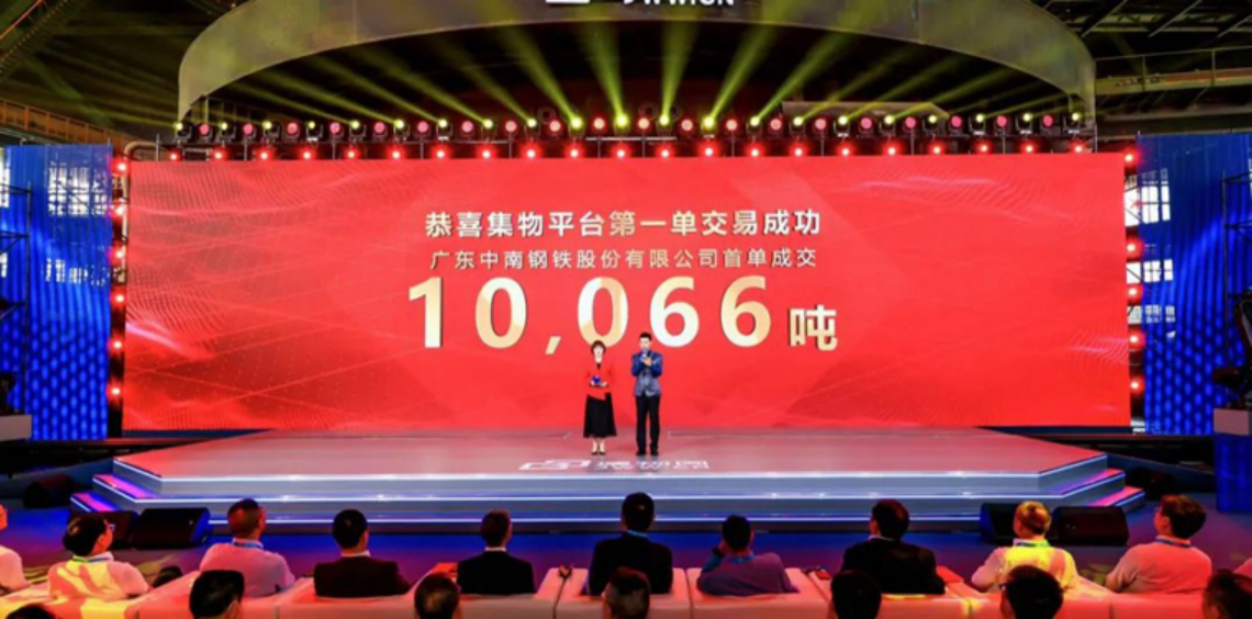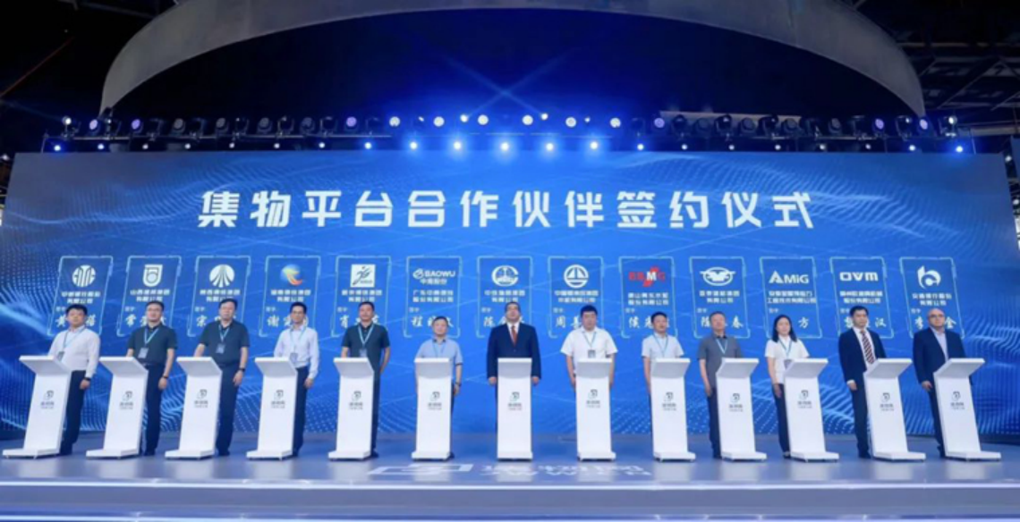 随着广东中南钢铁股份有限公司首单售出10066吨,“集物平台”宣告正式启航。此外,湖南钢铁集团有限公司、中国葛洲坝集团水泥有限公司、广东中南钢铁股份有限公司、新余钢铁集团有限公司、亚泰建材集团有限公司、陕西钢铁集团有限公司、安徽金星预应力工程技术有限公司、柳州欧维姆机械股份有限公司、山西建邦集团有限公司、唐山冀东水泥股份有限公司、中信银行股份有限公司、交通银行股份有限公司北京分行等12家企业代表现场签订了合作协议,多方携手共进,助力构建建筑业产业新生态。