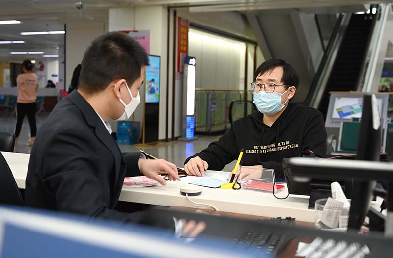 12月1日,工作人员在福州市政务服务中心“一件事”综合窗口为市民(右)办理子女医疗保险手续及申领医保卡等服务。