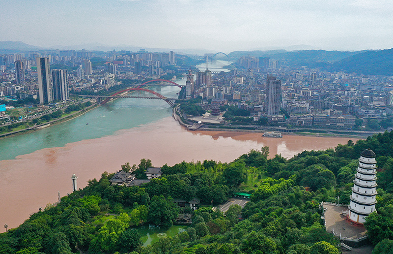四川省宜宾市三江口景色(2022年6月30日摄,无人机照片)。新华社记者 王曦 摄