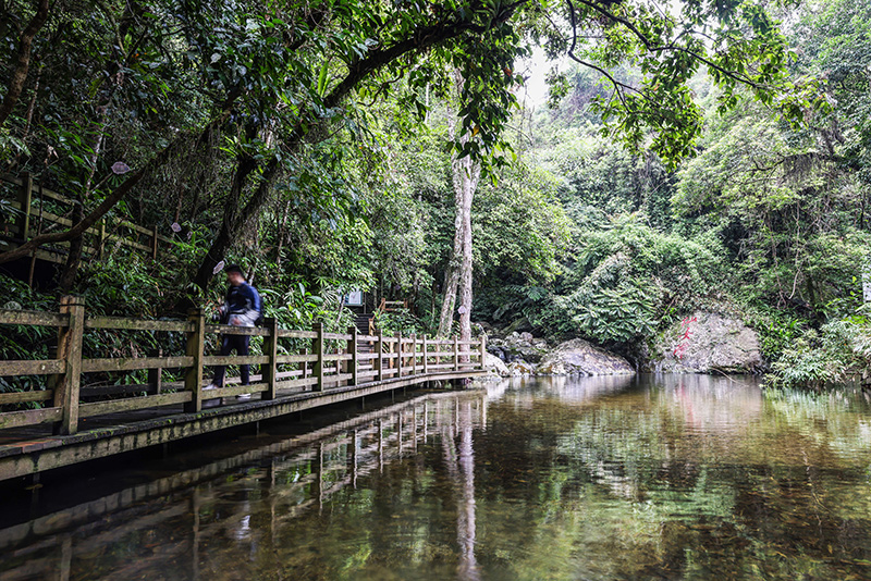 游客在海南热带雨林国家公园五指山片区的仙女潭游览(2022年5月17日摄)。新华社记者 张丽芸 摄