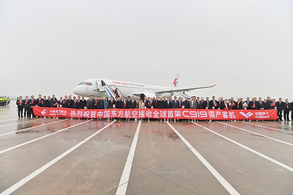 在当天的交付环节,中国商飞向中国东航交付“C919全球首架纪念钥匙”,颁发飞机销售证;中国民航局华东管理局向中国东航颁发国籍登记证、单机适航证(AC证)、电台执照,中国民航运输市场首次拥有中国自主研发的喷气式干线飞机。