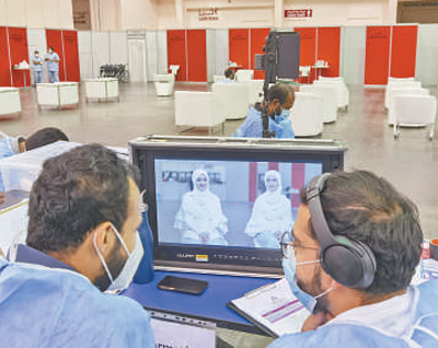 由中国国药集团与巴林政府共同成立的国际临床研究中心,坐落在巴林王国首都麦纳麦的巴林国际会展中心。在临时设置的10多个房间里,医疗技术人员正在为报名参与试验的志愿者扫码、打卡、解释流程等,就抗新冠病毒单克隆抗体鼻用喷雾剂(以下简称“单抗F—61”)在巴林的临床应用进行研究。