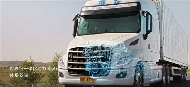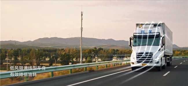 长头造型,风阻系数仅为0.36,远低于平头车。同时搭载东风康明斯一体化动力链,使整车油耗方面表现更为突出。目前在运营的客户平均百公里油耗为27L左右,相较于友商大马力同类产品省3-5L左右,按照年运营15万公里计算,每年为卡友节省油费约4.5万元。