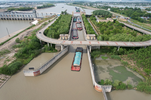 现在正值枯水期,江河水位落差大,平均每天过闸120艘,丰水期每天过闸船闸能达到160至180艘,每个月过闸船舶约5000艘,过闸效率提升约15%。