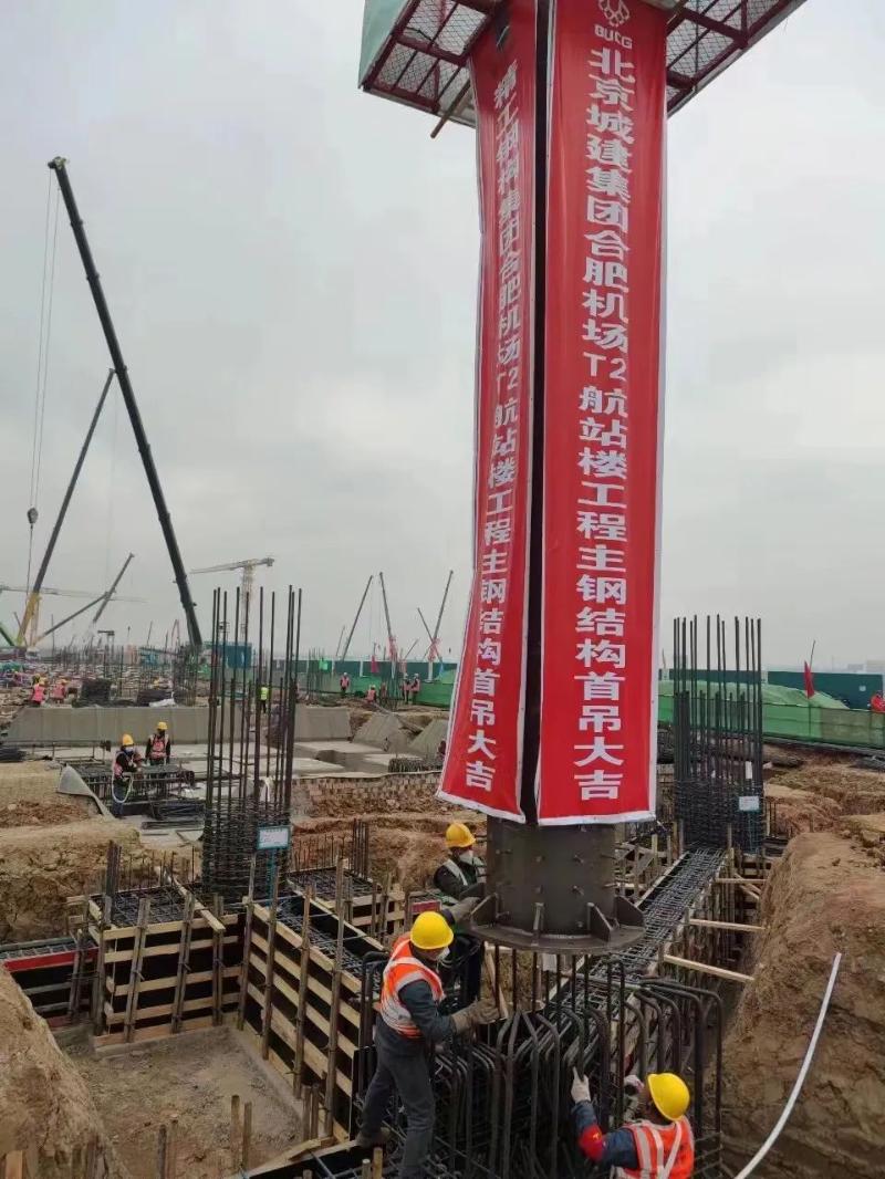 当日,合肥新桥机场T2航站楼工程第一块地下室底板混凝土开始浇筑,中央指廊钢结构立柱首次吊装。验槽工作、防水施工、底板钢筋绑扎施工有序推进,1000余名工人奋战在施工现场。